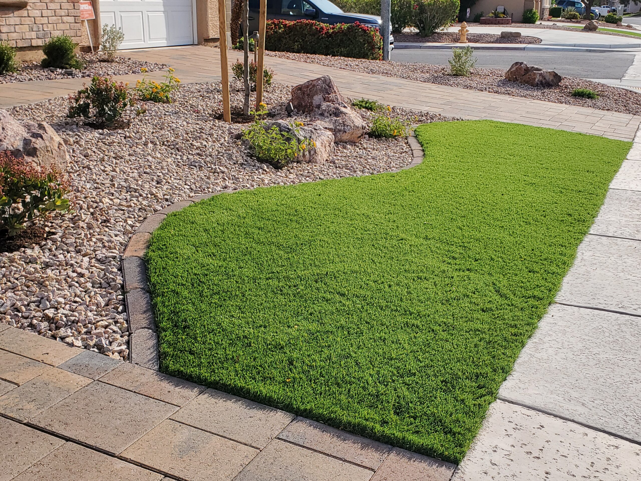 In the Las Vegas Valley, many homeowners use synthetic turf in their front yards, particularly when local regulations prohibit the installation of natural grass. With a carefully selected turf, your front yard can remain green and inviting without the maintenance requirements of a traditional lawn.
